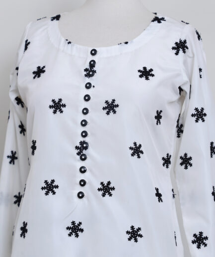 White Minimal Embroidered Pret Dress with Straight Pants | Casual Pakistani 2 Piece Outfit for Women