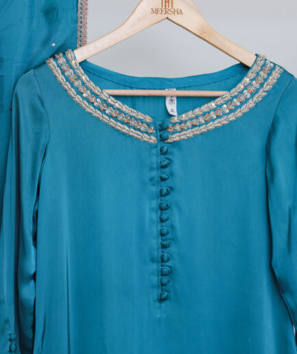 Teal Blue Luxury Pret Dress with Embellished Dupatta & Pants | Elegant Pakistani 3 Piece Suit for Women