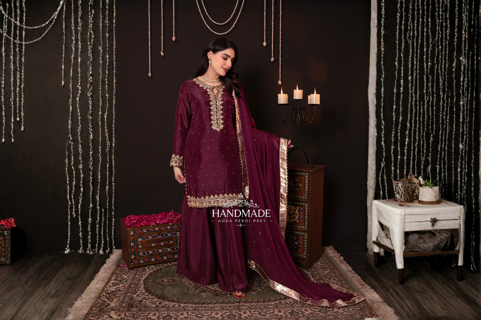 Zarqash Maroon | Hand Embellished Festive Couture Set