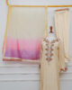 The highlight of this ensemble is its stunning ombre dupatta, blending soft pink hues with subtle embellishments for a dreamy, feminine finish. Paired with matching straight pants, this 3-piece suit is perfect for festive occasions, Eid celebrations, and daytime weddings.