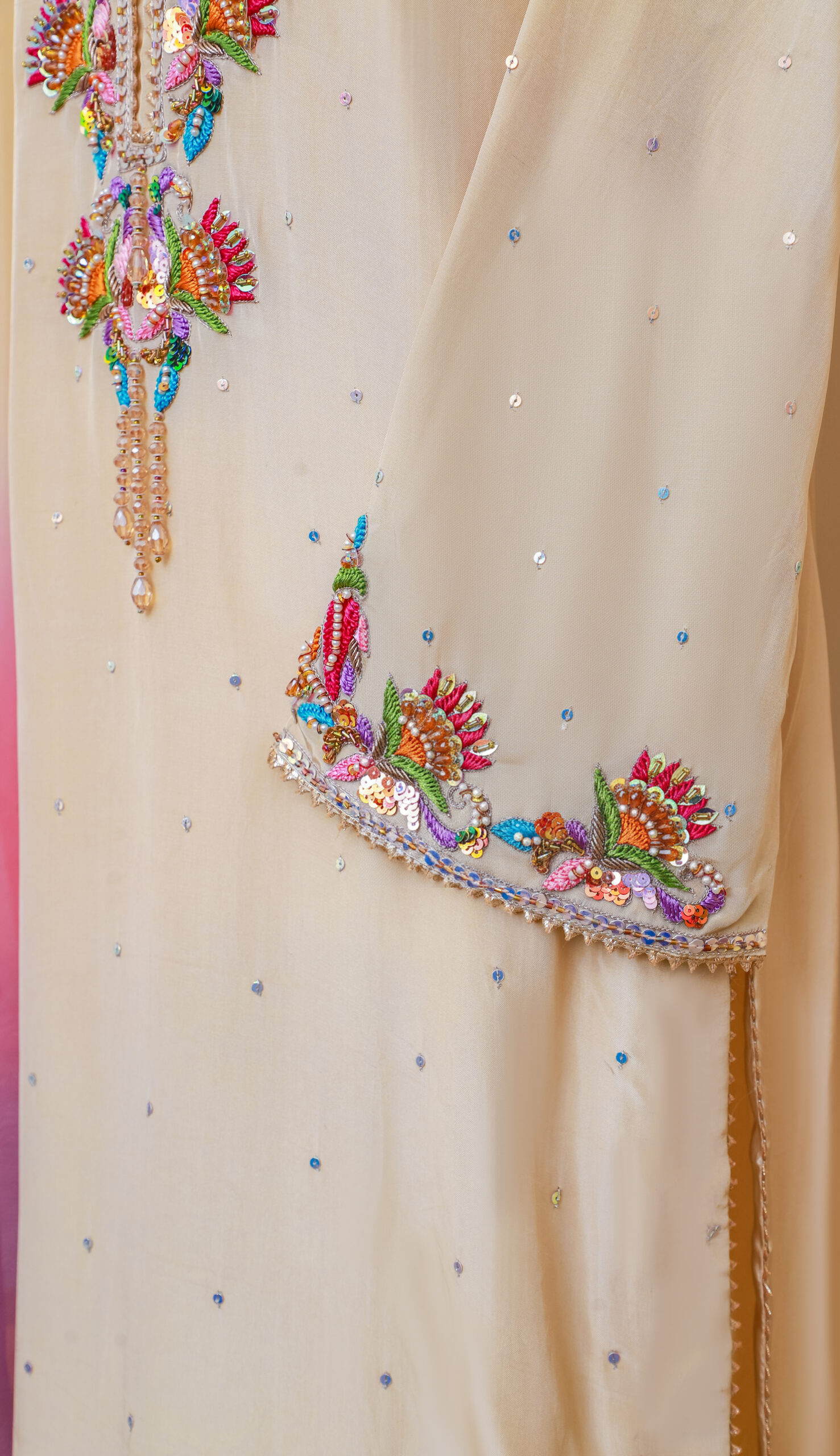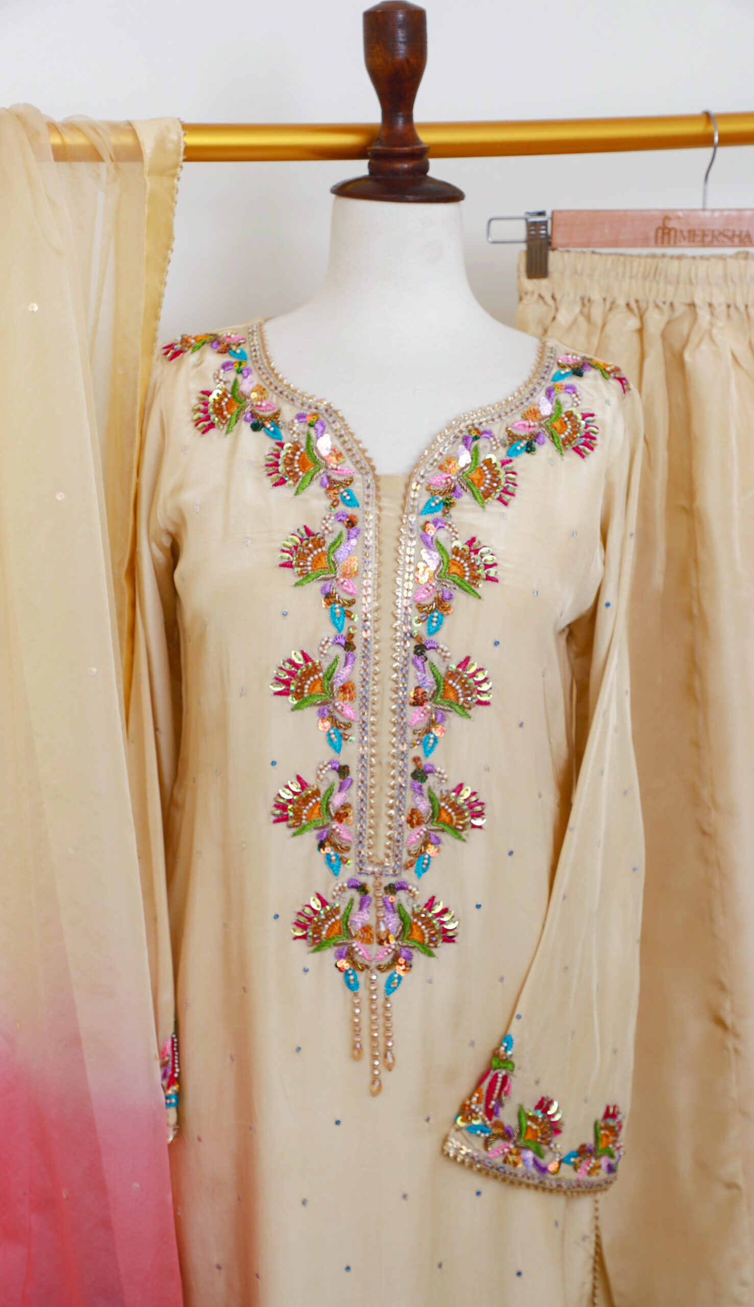 - Color: Beige with Multicolor Embroidery